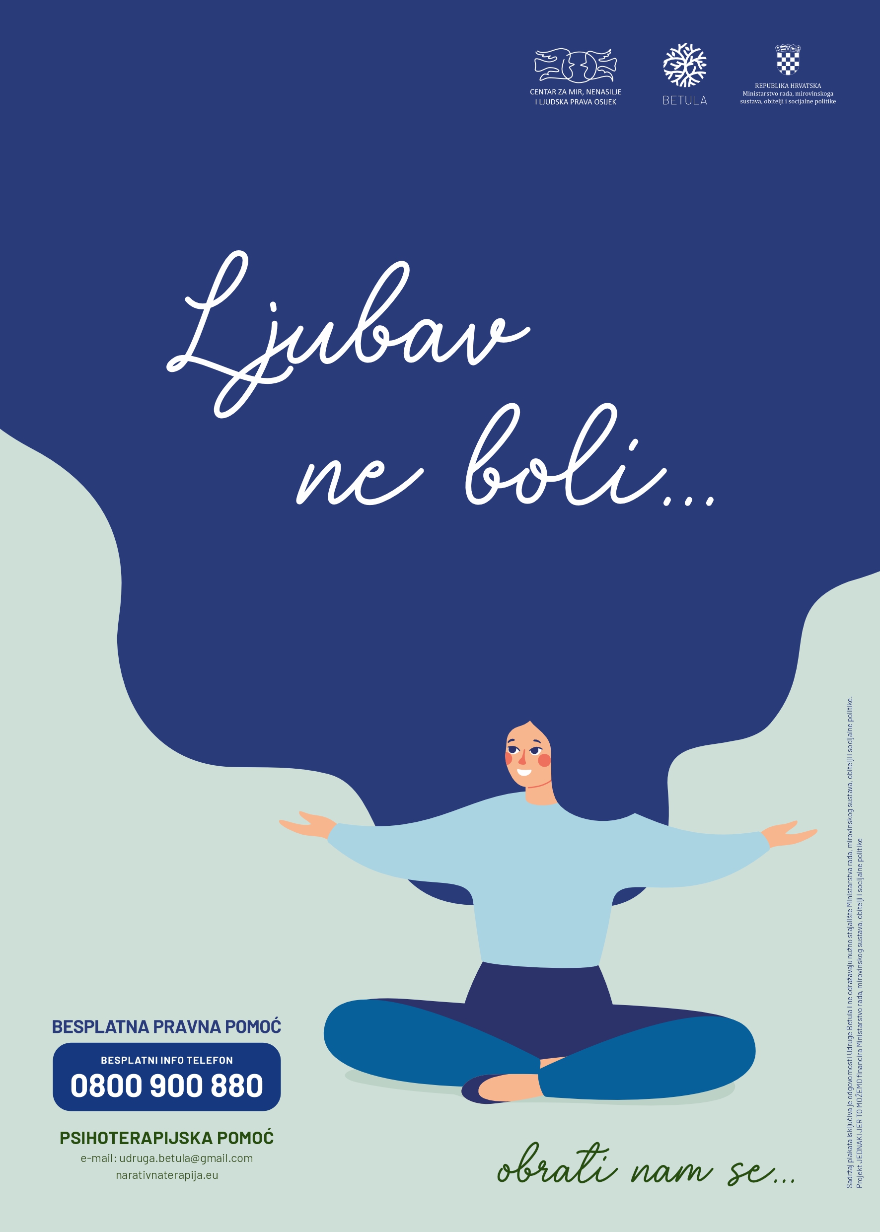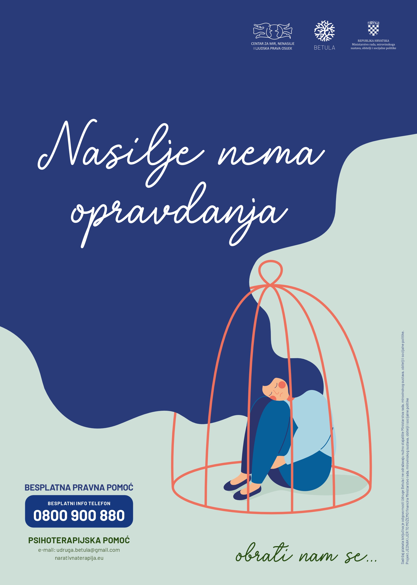 Kampanja plakatima osmišljena u suradnji Udruge Betula i Centra za mir nenasilje i ljudska prava u sklopu projekta JEDNAKI JER TO MOŽEMO financiranog od strane Ministarstva rada, mirovinskog sustava, demografije, obitelji i socijalne politike. Plakati su tiskani i postavljeni u centre, odgojno obrazovne i zdravstvene ustanove u Osijeku i okolici.